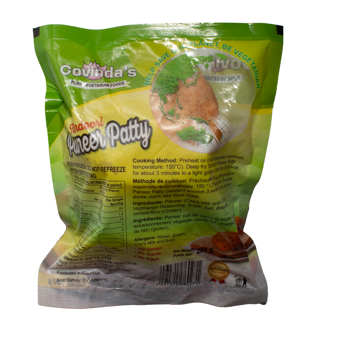 Experience the rich and aromatic flavors of Govinda’s Gift Tandoori Paneer Patty, a delightful fusion of traditional Indian spices and creamy paneer. This 300g pack features high-quality paneer made from cow's milk and citric acid, providing a smooth and creamy texture that is perfect for a variety of dishes.