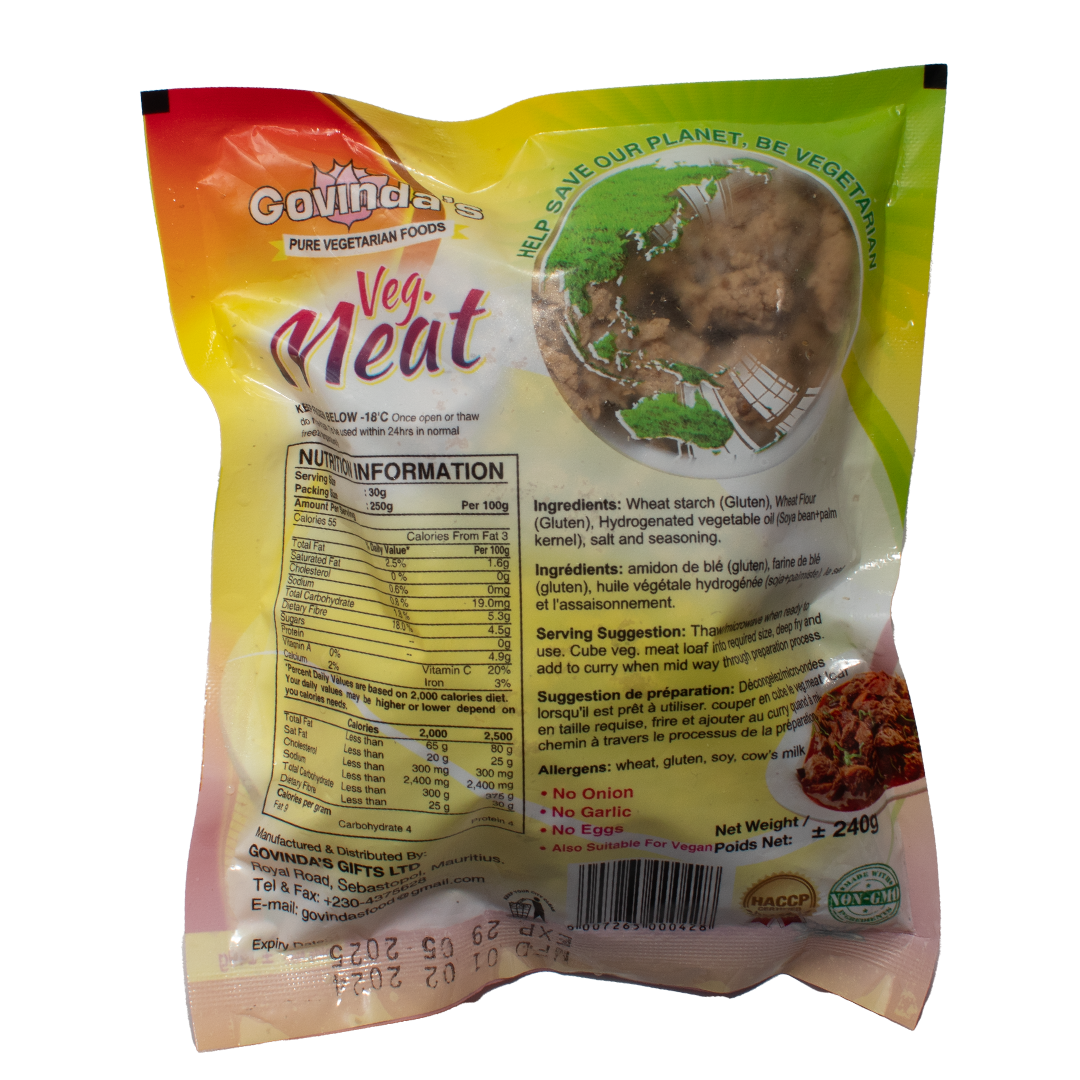 Infused with a carefully balanced blend of vegetarian seasoning, sugar, and salt, Govinda’s Gift Veg. Chicken Meat delivers a flavorful and savory experience that will enhance any meal. Whether you're stir-frying, grilling, or incorporating it into your favorite recipes, this plant-based chicken is versatile and easy to prepare, making it a convenient and tasty addition to your meals.